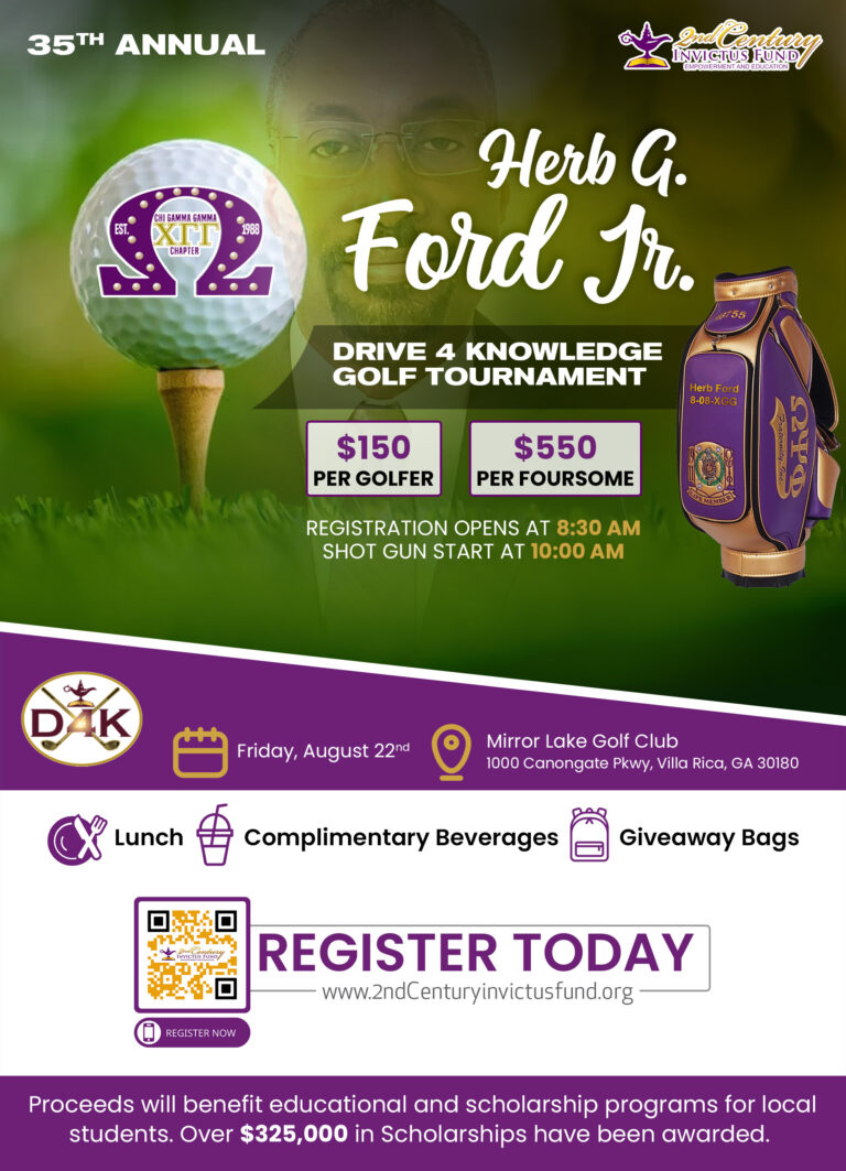 The Herb Ford Jr. Drive 4 Knowledge Golf Tournament isn’t just another day of golf — it’s a celebration of excellence, community, and legacy. Named in honor of Herb Ford Jr., a committed brother, mentor, and advocate for education, this tournament fuels our scholarship fund and empowers future leaders through higher education.